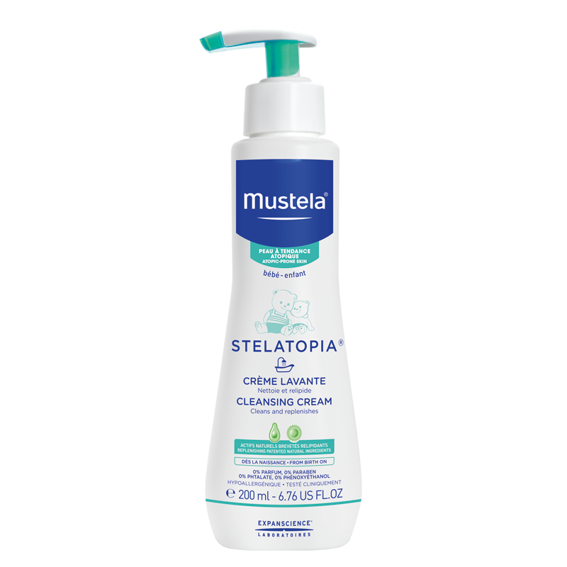 To STELATOPIA® Κρεμώδες αφροντούς Mustela® έχει μια απαλή, κρεμώδη σύνθεση ιδανική για χρήση στο ατοπικό δέρμα των μωρών και των παιδιών.