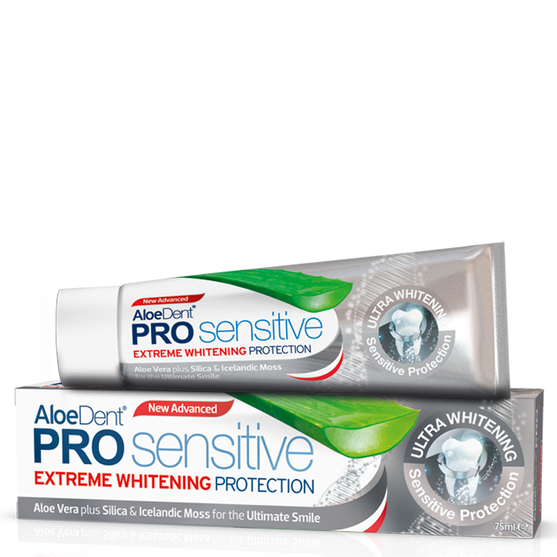 Η Aloe Dent Pro Sensitive Extreme Whitening Protectionτης Optima είναι οδοντόκρεμα με προηγμένη σύνθεση φυσικών λευκαντικών και φθόριο, ώστε να χαρίζει λευκότερο χαμόγελο, ενώ παράλληλα προστατεύει τα ευαίσθητα δόντια και ούλα.