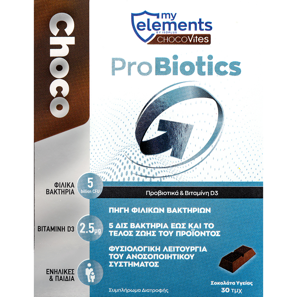 To Chocovites Probiotics της myelements είναι μια φόρμουλα με προβιοτικά και βιταμίνη D3. Το πατενταρισμένο συστατικό της φόρμουλας HOWARU® Bifidobacterium lactis HN019™ διατηρεί τα 5 δισεκατομμύρια βακτήρια που περιέχει έως και το τέλος ζωής του προϊόντος. Παράλληλα, βοηθά στη μείωση των συμπτωμάτων από διαταραχή του γαστρεντερικού συστήματος, όπως πόνος, ναυτία, μετεωρισμός.*