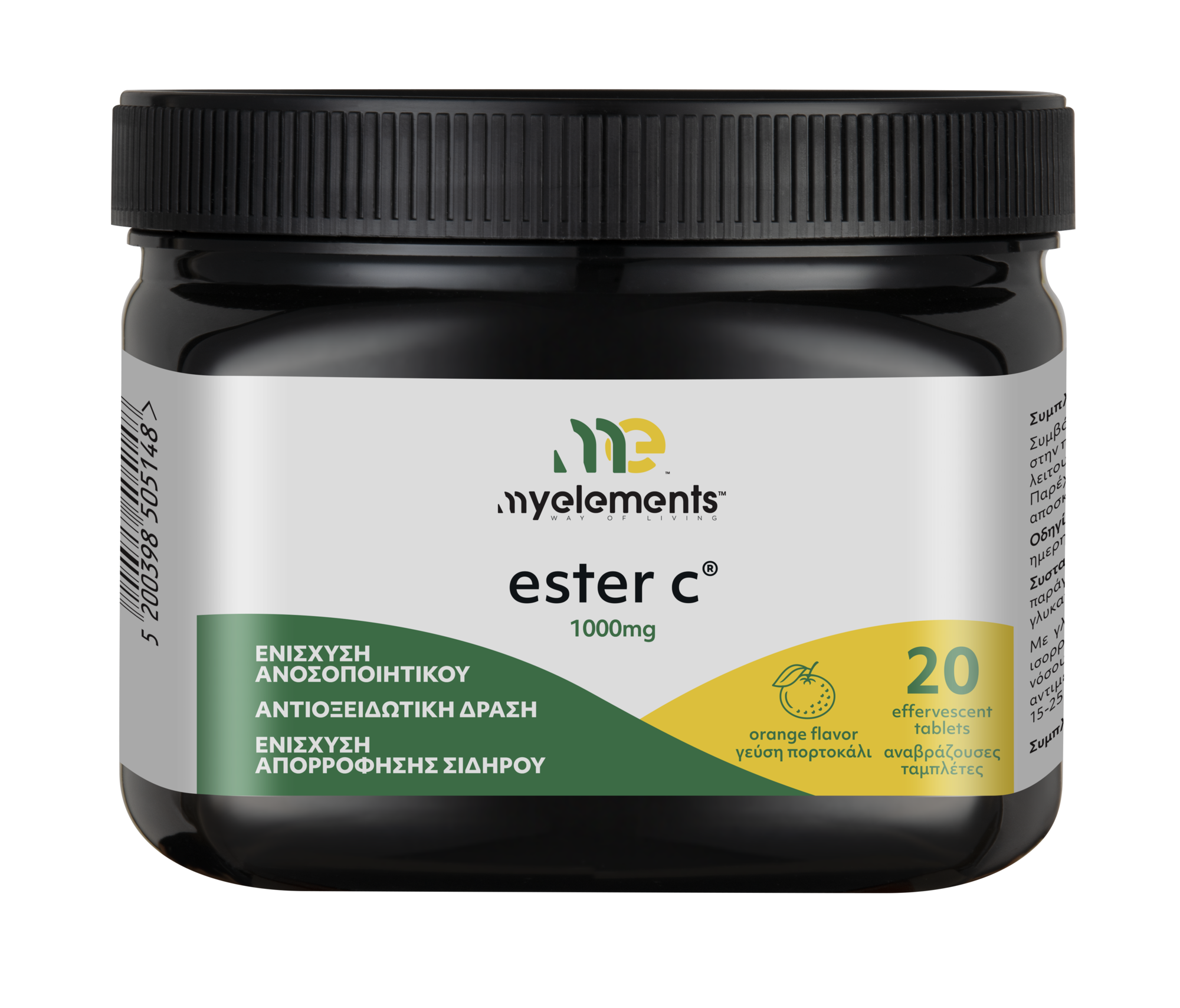 Συμπλήρωμα διατροφής με βιταμίνη C σε μορφή Ester-C. Η Ester C αποτελεί το άλας της βιταμίνης C, με αποτέλεσμα να είναι φιλική προς το στομάχι, όπως επίσης και πιο απορροφήσιμη συγκριτικά με την όξινη μορφή της. Η φύση χρησιμοποιεί τη βιταμίνη C για «όλες τις λειτουργίες» παντού στο σώμα. Συμμετέχει σε 15.000 διεργασίες του μεταβολισμού, όπως στην παραγωγή ορμονών, νευροδιαβιβαστών και κολλαγόνου. Παράλληλα, ενεργοποιεί την αποτοξίνωση του ήπατος και δεσμεύει βαρέα μέταλλα όπως ο υδράργυρος, ο μόλυβδος και άλλες βλαβερές ουσίες.
