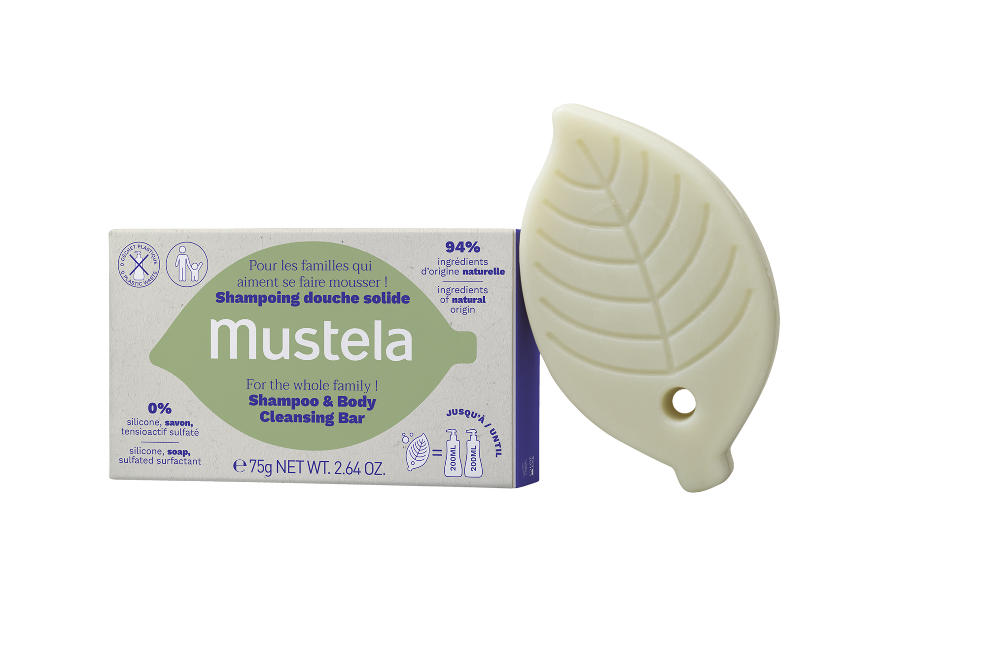 Μια μπάρα καθαρισμού, χωρίς σαπούνι, συντηρητικά, σιλικόνη & θειικά επιφανειοδραστικά, εμπλουτισμένη με βιολογικό έλαιο αβοκάντο και ελαιόλαδο, κατάλληλη για τα μαλλιά και το σώμα. Ιδανικό για όλη την οικογένεια από 3 ετών και άνω. Κατάλληλο για εγκύους.