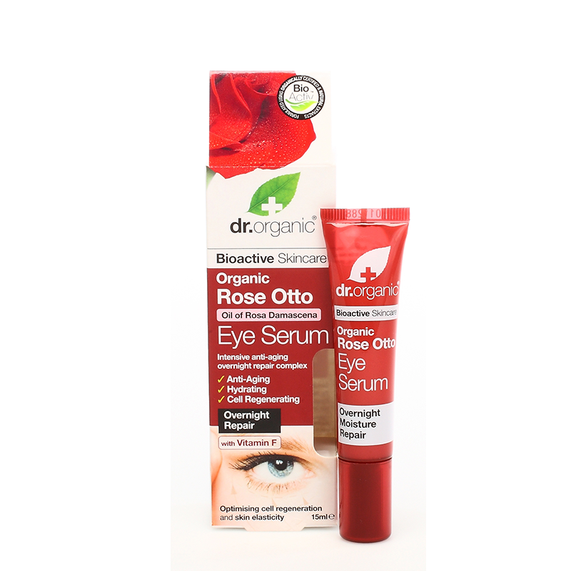 Το σέρουμ ματιών Organic Rose Otto Eye Serum της dr.organic με Βιολογικό Έλαιο Τριαντάφυλλου είναι ένα εξαιρετικά εντατικό αντιγηραντικό σύμπλεγμα για δράση κατά τη διάρκεια της νύχτας, και συνδυάζει το Βιολογικό Έλαιο Τριαντάφυλλου με Ροδόνερο, Αλόη Βέρα, Μαύρο Σιτάρι, Έλαιο από Σπόρους Βάμβακα, Τίλιο, Χαμομήλι, Πασσιφλόρα, Καλέντουλα, Πανθενόλη, με προσθήκη Αιθέριων Ελαίων Γερανιού και Γαρύφαλλου.